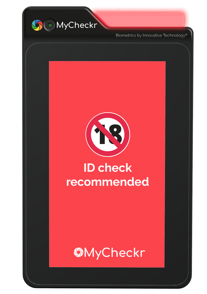Age checks can be performed at the point-of-sale with assisted age estimation technology. Prevent minors from purchasing age restricted goods such as alcohol, vapes, tobacco and knives. MyCheckr is a standalone device that performs anonymous age checks, to assist staff during the sale of age restricted goods. It gives a clear indication when a manual ID check is recommended, giving staff confidence to make informed decisions during the age check process.